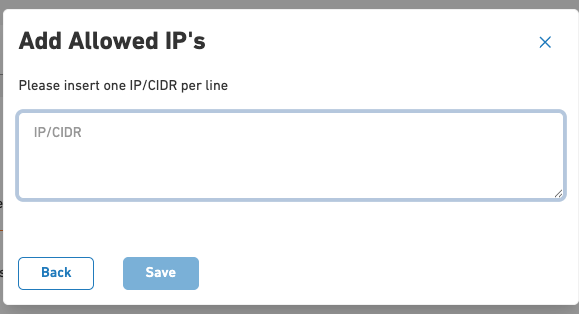 - Use the “Add IP” button to add a new IP address to authorise the management of your cluster